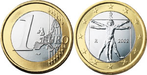 Great Collector Item.Own or give the gift of this New and Uncirculated 1 Euro Italian coin showing the famous drawing by Leonardo da Vinci, displayed in the gallery of the Academy in Venice, illustrating the ideal proportions of the human body.