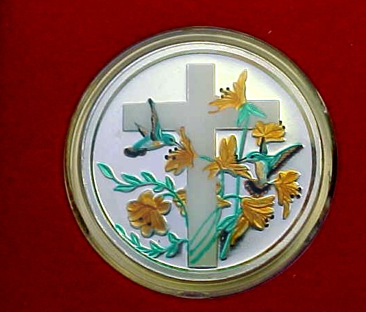 1 Oz. 999 Fine Enamled Silver Round. It is encapsulated in airtite crystal clear protective acrylic holder and is placed in velvet lined laminated gift box. Guaranteed to delight everyone..